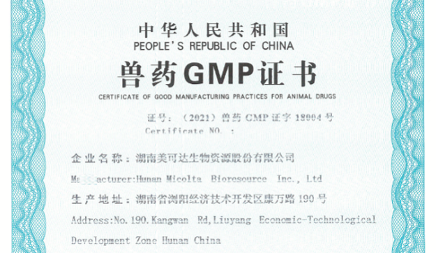 湖南首家!溢多利子公司湖南美可達生物資源股份有限公司通過2020年版獸藥GMP驗收 2021年1月2...